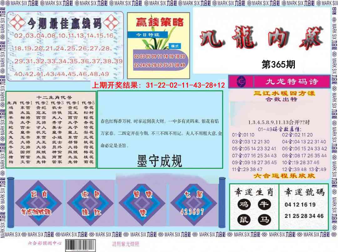 365期: 澳门六合皇彩圖信封【九龙内幕】每期自动更新